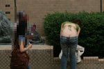 | 超ローライズに 背中のポッカリ開いたトップスを着て、人通りの多い歩道に じっと居なさい と命令されて・・・・・ アキオは遠く離れたところから 望遠で撮影しています。 一人でこの格好で じっと居るのは すごく辛い・・・・です。 もう恥ずかしくて背後を歩いていく人を見る余裕もありません。 背後を多くの人たちが歩きすぎていきます。 歩いている人たちのことを見る余裕もなく、ただじっとうつむいていることしかできません。 本当に1秒1秒が すごくすごく長い時間のように感じられて またその辛さはどんどん増していって、 ついに限界に達してしまい 恥ずかしさのあまり その場から逃げ出してしまうことに。 でも、アキオもこの程度では 許してくれません。 ちょっとトップスを着替えて すこし場所を変えて また一人で放置されることに。 でも、今回のほうが人の多さが桁違いです!! |