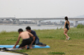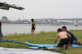 最初は水着を着て海水浴をするつもりが それでは普通過ぎるということで まずは港の波止場で撮影することに・・・・ でも 近くにいたバーベキューをしている若者たちが こちらの方を指差して騒ぎ出したので(水着で撮影するくらい、騒ぐほどのことではないと思うんだけど・・・) やむなく撤収することに(~_~;) それから、河口付近でウィンドウサーフィン?? をしている人たちの近くで撮影することに♪ はじめは水着での撮影だったんだけど アキオがここで着替えてみよう と言い出し、水着から別の水着に着替えることに!! |