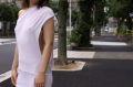 | 白いワンピなんだけど、すごくすごくすごく薄手で しかもなんだか たすきみたいなちょっと姿勢が崩れると すぐにポロリしてしますような・・・・ こんな格好で街中に出没しなさい なんて言われてしまい、最初は人通りがあまりない路地だったりするんだけど・・・・・ |
