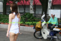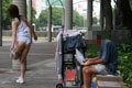 都心の早朝。ちょっと運動をしようと都会のオアシス的な公園に。 タンクトップにショーパンで。 公園で夜を明かす人たちや 朝の通勤などで 道行く人。 ちょっとこの格好は異質だったようで、すごく目を引いてしまいました(汗