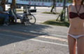 | ちょっとフェチな衣装です。 スカートを脱いで 下半身はパンティだけ!! そして そのまま開けた広場へと連れて行かれて、すぐ後ろの東屋には数人の人がいるにもかかわらず、こんな恥ずかしい姿を露わにさせられて 背後からなにやら話し声が聞こえていますが 恥ずかしくて耳にも入ってきません。 ここにいる時間が 途方もなく長い時間に感じられました(・・;) |