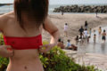 透ける赤いチューブトップビキニで 海辺の町へ。 すぐに海岸に行かずに 街中を連れ回されて 路上で露出させられ すごくスリルを味わい だんだん盛り上がってきたところで 海岸に。 ビーチには家族連ればかりで さすがにこの格好では出られず 手前の遊歩道で撮影してると じっとこちらを見ている男性が!!