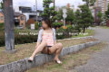 すごくおしっこに行きたい と言うと トイレのあるところに行こう となり トイレのある公園へ。 でも、急に折角だからそのまま外でしよう とアキオが言い出して。 すごく開放的な小さな公園で、すぐ横に道路や住宅街があり、しかも 歴史的なものがあるみたいで ここを訪れる人も多いみたいで しかも地元の人が普通に行きかうところ。 ここでトイレのすく横の岩に腰掛けて おしっこをしたあと。 もうしばらくここで撮影をすることに。 周りからの目も気になり すごく緊張しながらの撮影でした(;^ω^)